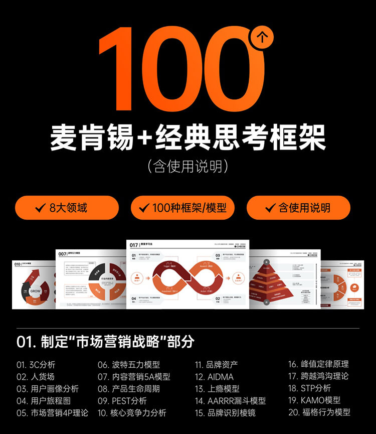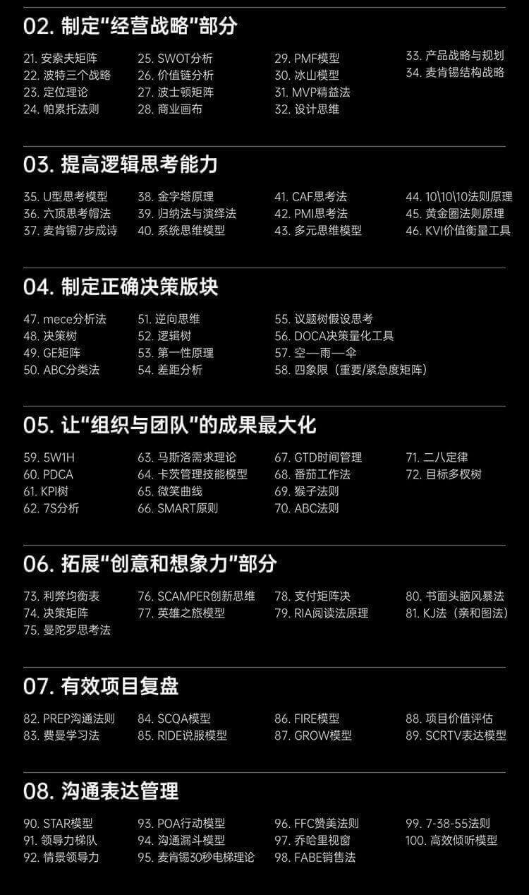 - 100个思考框架/模型 + 100页逻辑图 + 100页数据图,共300页