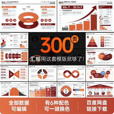 300页-高端工作汇报年中总结PPT模板 | 思考框架·逻辑图·数据